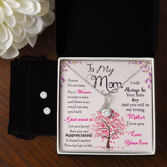 Gift For Mom From Son - I Know It's Not Easy - Alluring Beauty Necklace & CZ Earrings