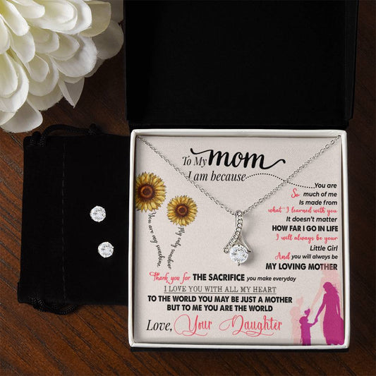 Gift For Mom From Daughter - Thank You For Everything - Alluring Beauty Necklace & CZ Earrings