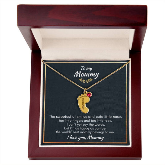 Gift for Mommy - Ten Little Fingers & Toes - Custom Baby Feet Necklace & Birth Stone