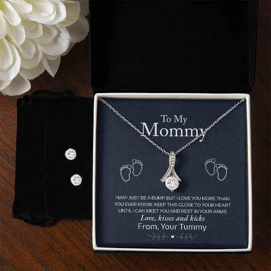 Gift For Mom From Baby - To My Mommy Love From Your Tummy - Alluring Beauty Necklace & CZ Earrings